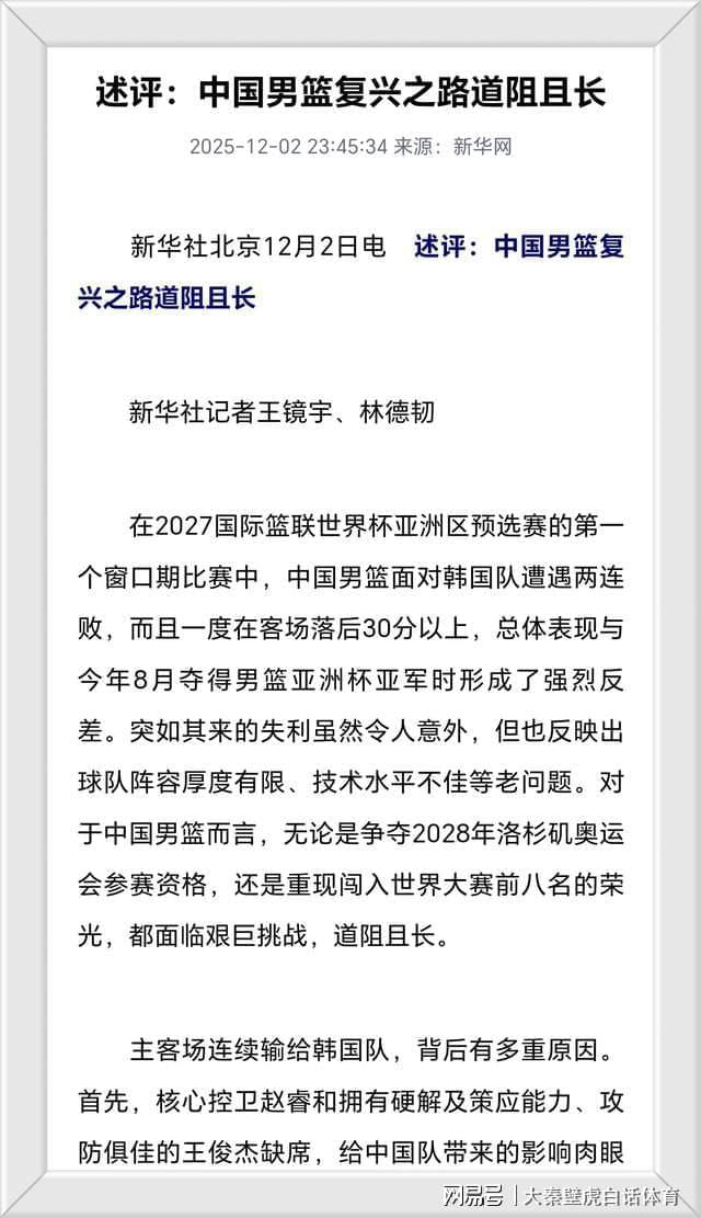新华社发文!中国男篮2连败韩国3天后总结输球原因,主要以下3点